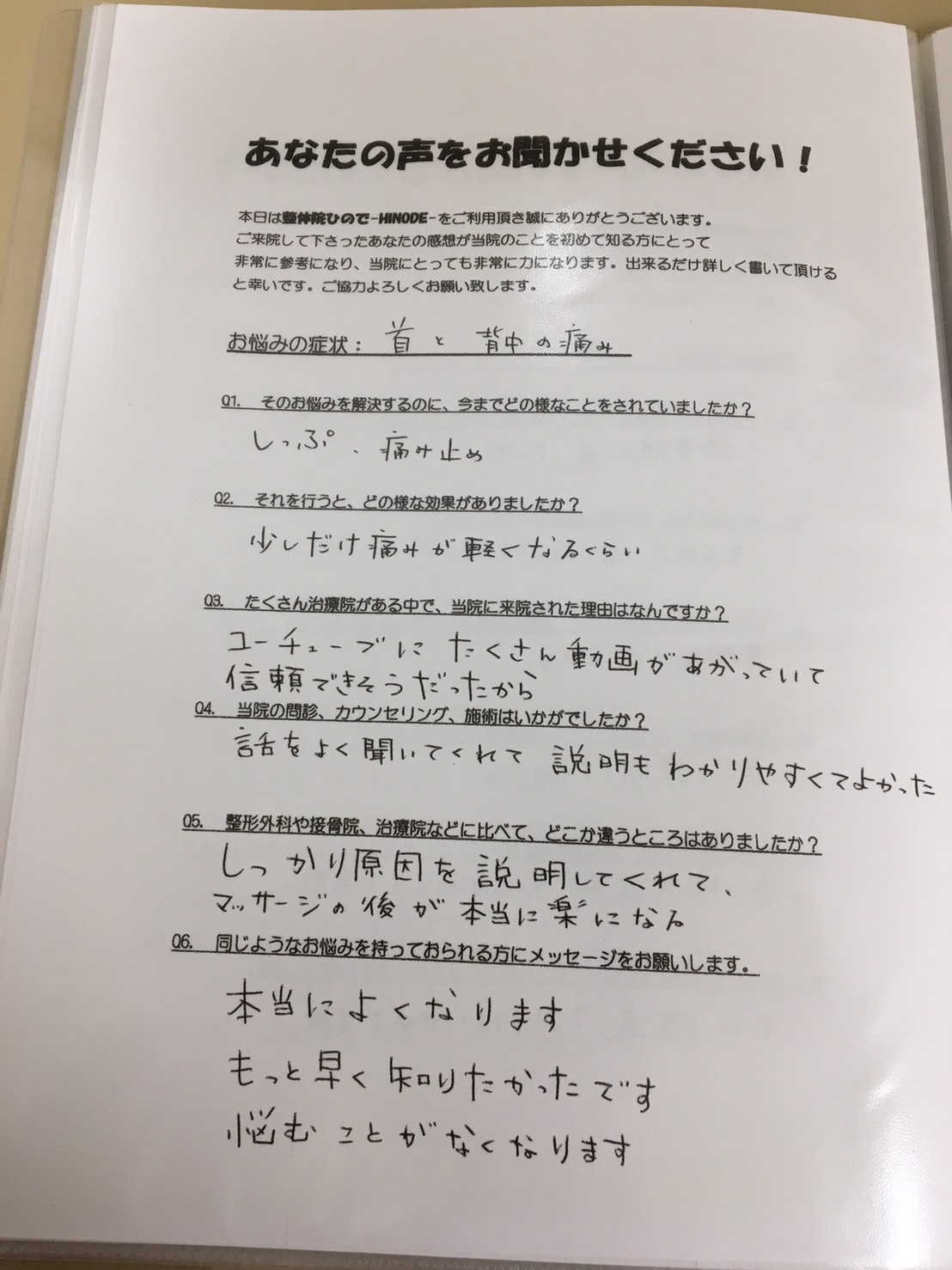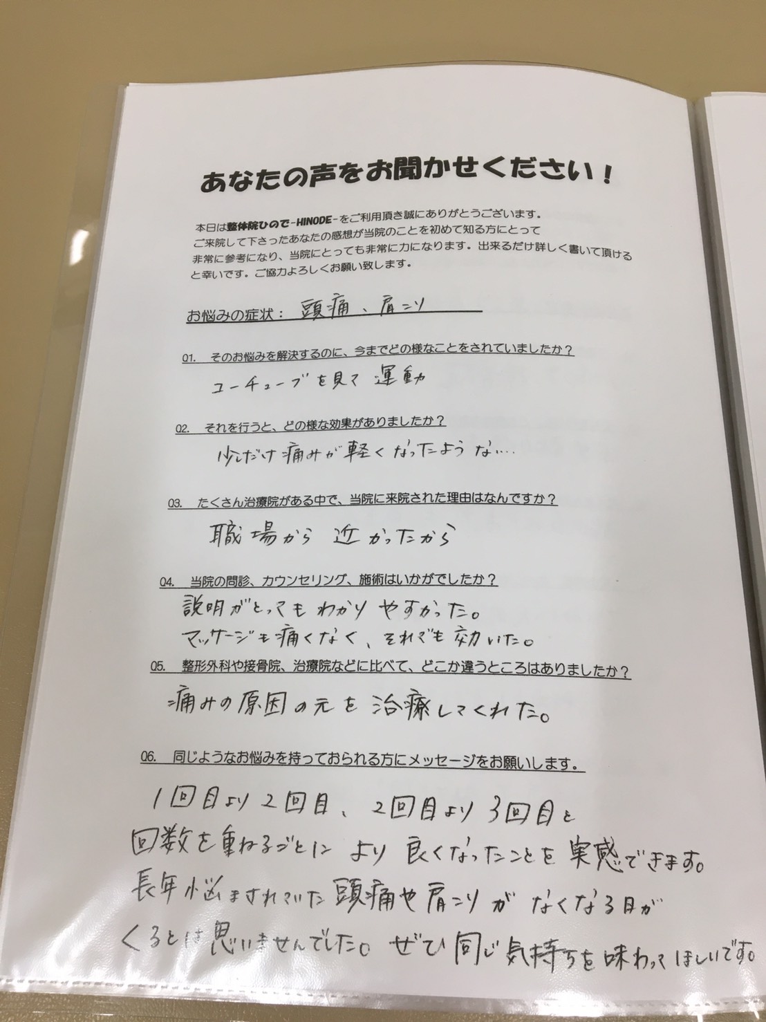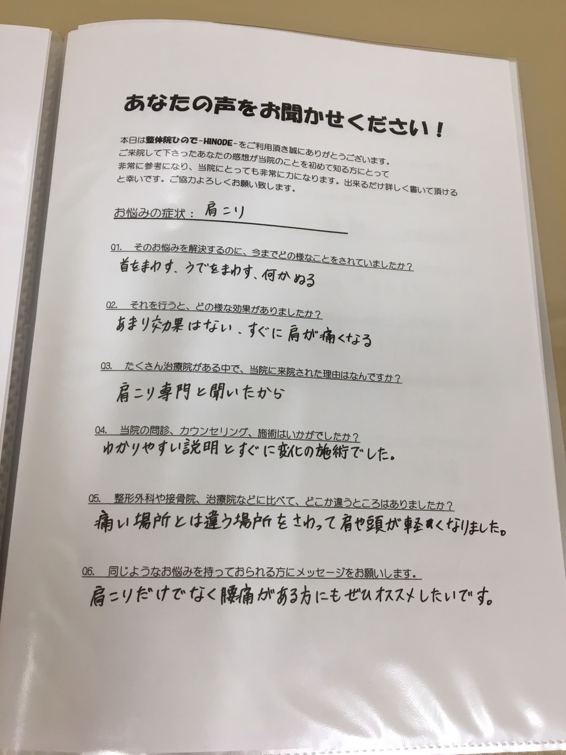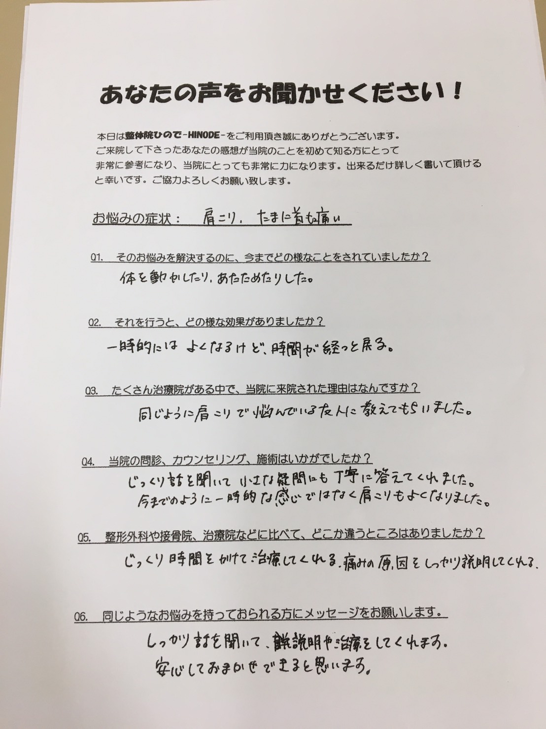 その方法で改善された方、もう肩こりは治らないと諦めている方は