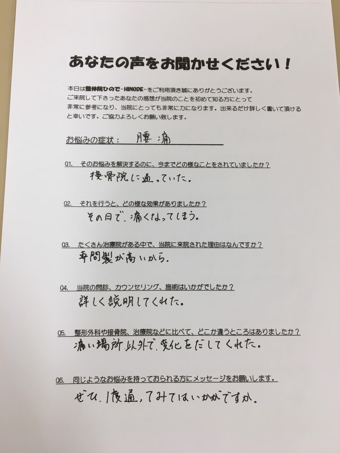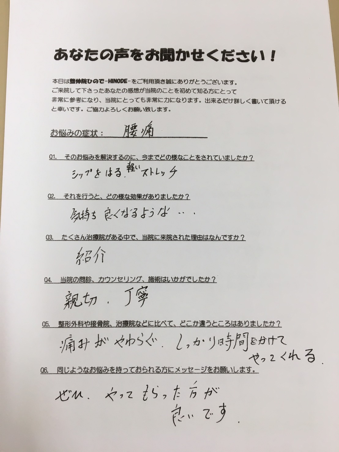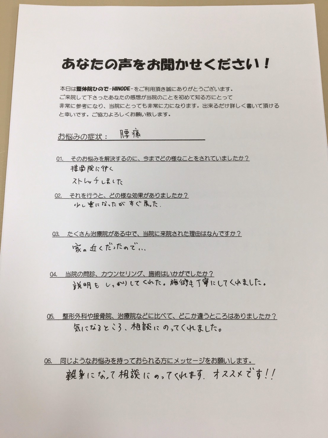 お身体でお悩みなのであれば是非、吉村先生を頼ってください。治療技術はもちろんの事、人として信頼できる先生です。